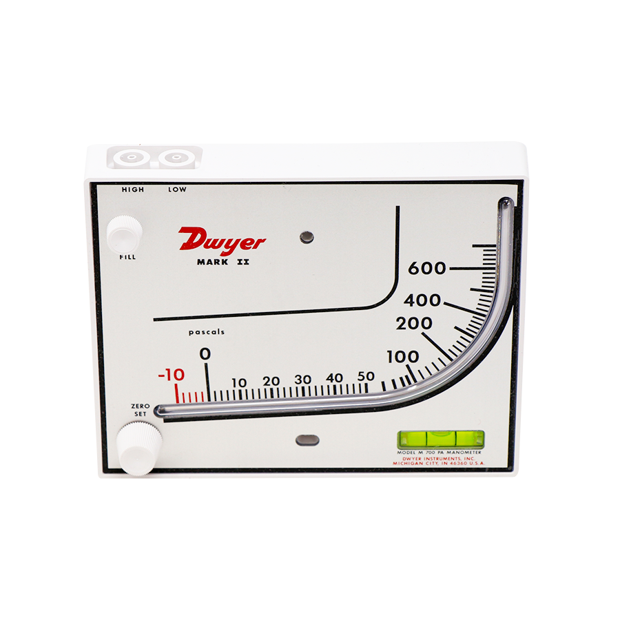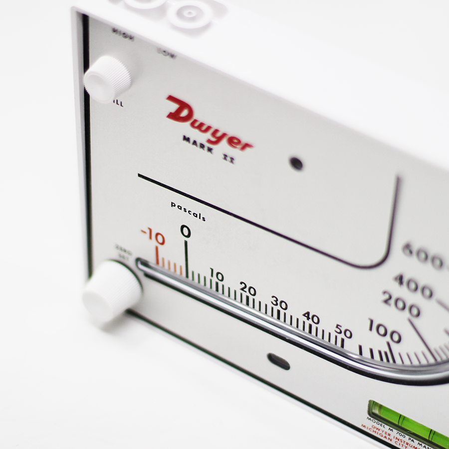 Capable of pressure measurements above and below atmospheric as well as differential pressure measurements. Included with each Mark II Dwyer Manometer are two tubing connectors for 1/8″ pipe or sheet metal ducts, two mounting screws, 1 ounce bottle of indicating fluid, red and green pointer flags and complete instructions.