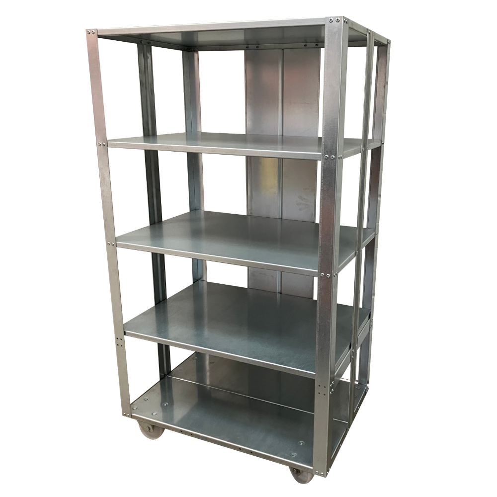 - Metal frame with shelves