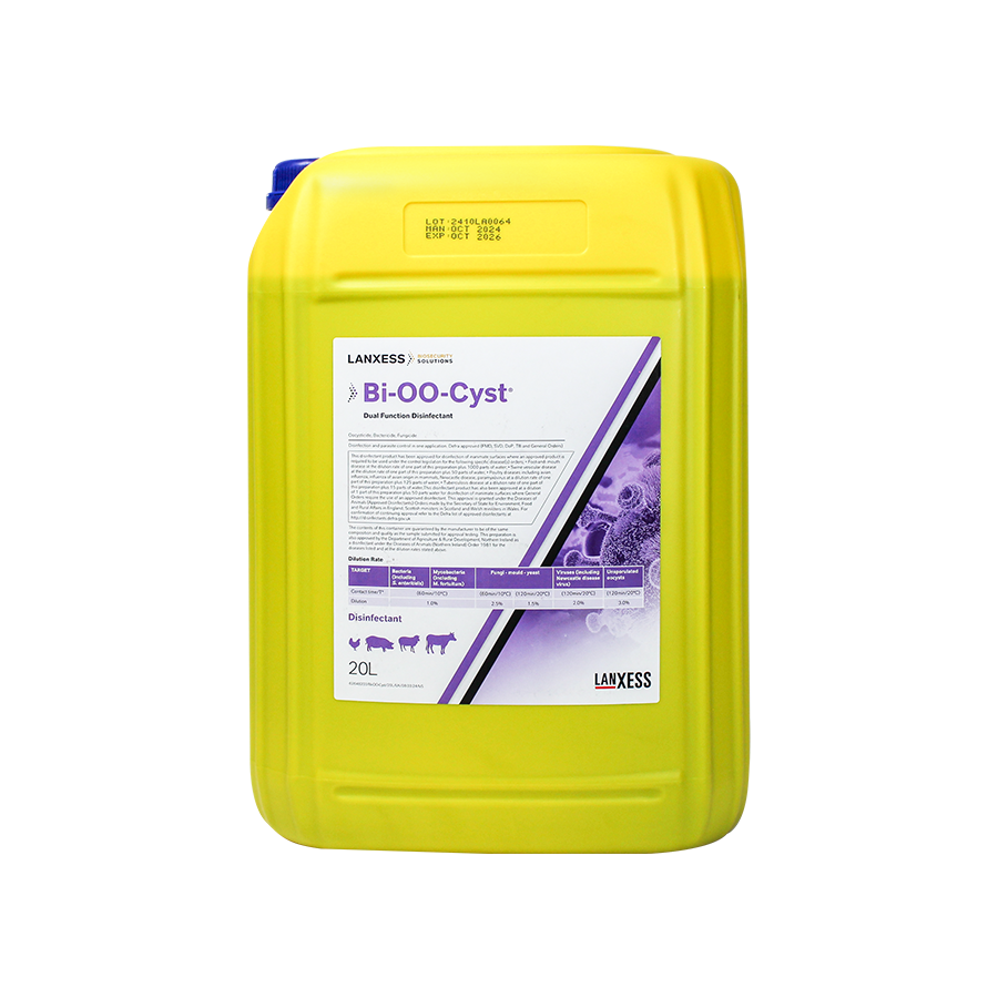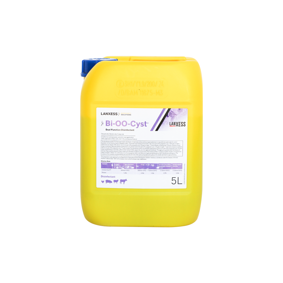 Bi-OO-Cyst is a powerful disinfectant, whilst also being effective against endoparasites especially oocysts. Its broad spectrum of activity is effective against viruses, bacteria, moulds and yeasts.
