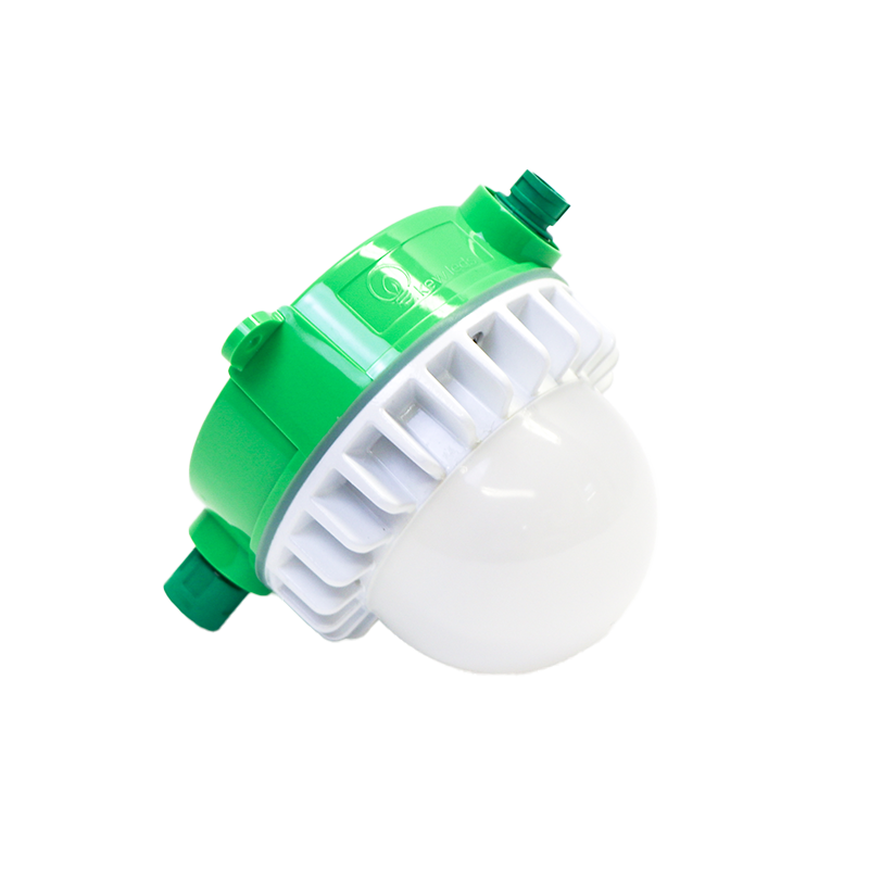 A fully plug-and-play, 100% dimmable IP67 rated LED light fitting designed for poultry and pig rearing.