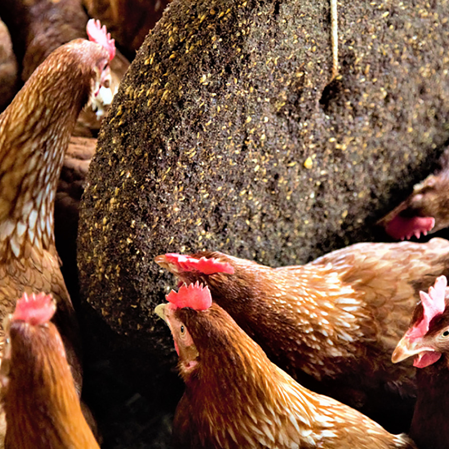 Designed to cater for up to 2,000 laying hens per block for 5–8 weeks, the peck block also emits a distinctively appealing sweet smell that attracts birds to the enrichment the block provides and encourages repeat visits. Natu-Pek pecking blocks are simple and easy to install and suitable for any set-up. They can be suspended from the ceiling or raised off of the ground in a dry scratch area.