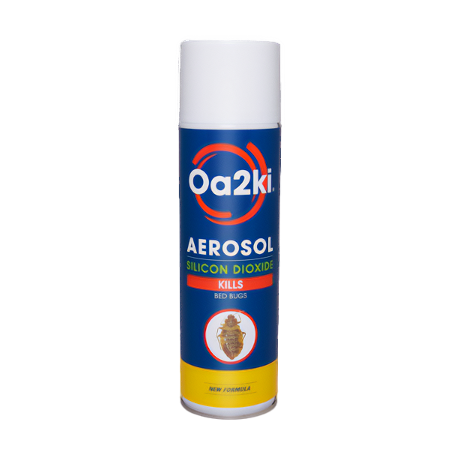 Oa2Ki aerosol is an organic insect control agent formulated into an aerosol application to kill insects, Oa2Ki aerosol functions solely by physical means and is effective in desiccating most types of crawling insects such as bed bugs, ants, cockroaches, fleas and red poultry mite. The Oa2ki aerosol allows you to apply the product in a convenient way to surfaces which were previously impossible to treat with traditional diatomaceous earth dust. Due to the desiccation effect of Oa2Ki aerosol, control of the insect does take time, however, the residual action of diatomaceous earth has the added benefit of maintaining insect control for long periods of time.