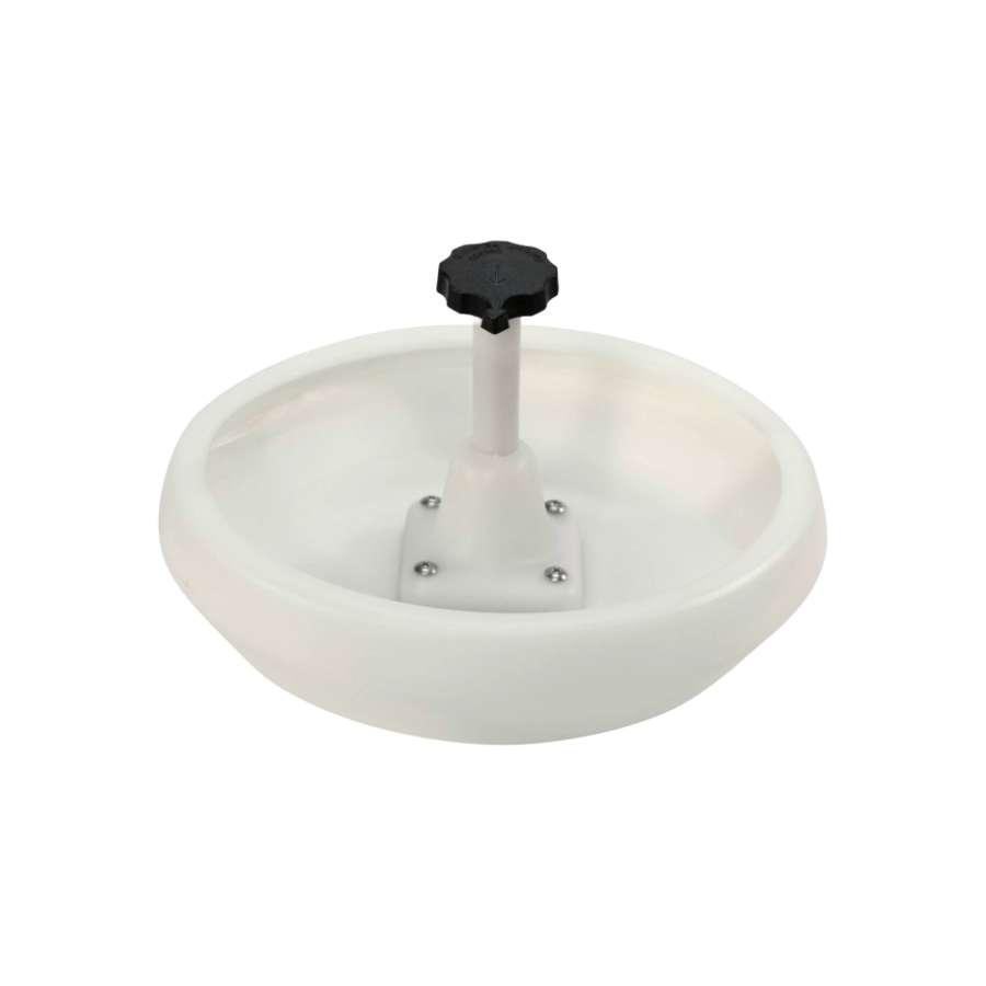 Can be used for dry food, milk or water and may be fastened to all standard slatted floors with a clamping T hook on the underside. This also helps to reduce food wastage whilst piglets play as the bowl is fixed. Can be attached to the bay and moved with the handle.