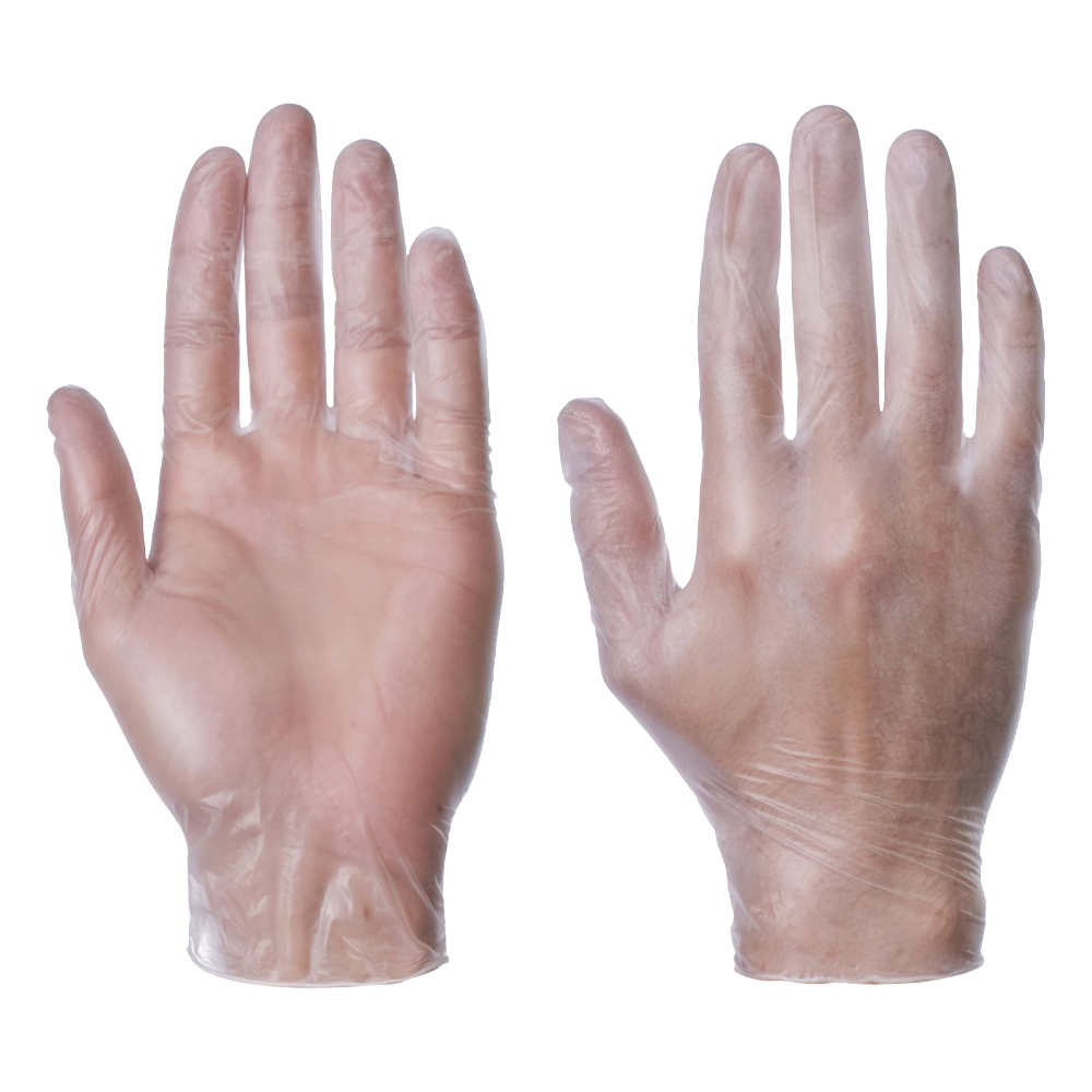 Box of 100 x powder free, disposable, clear vinyl gloves.